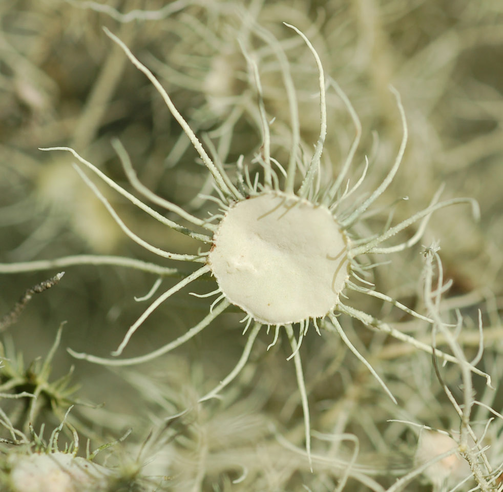 Blomskägglav - Usnea florida Foto: Jesper Lind, 18 sep -09 |